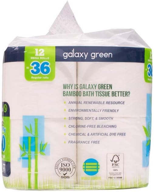 Galaxy Green Bamboo Bath Tissue Paper, 380 sheet 2 ply Mega Rolls, 12 Count (Pack of 4)