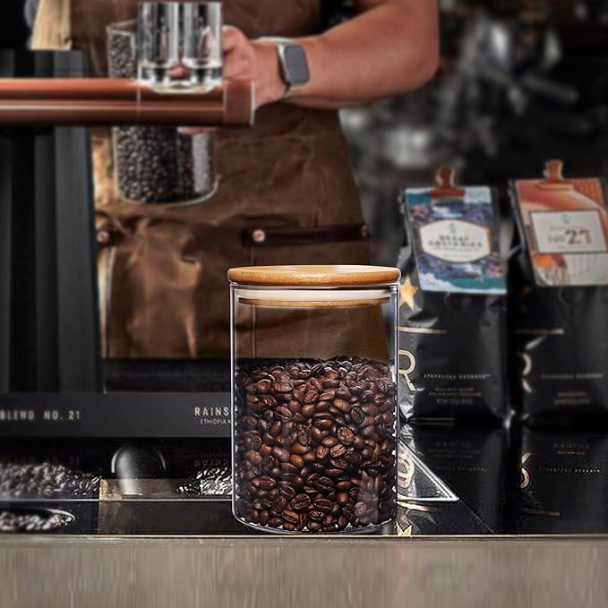 - Airtight Bamboo Lid: This glass jars with bamboo lids is equipped with food-grade silicone sealing ring and the tight with the mouth, glass storage jars it is more airtight to keep the food fresh and dry.