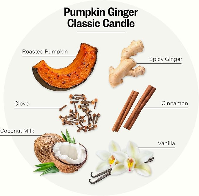 - The Fragrance: Pumpkin Ginger is a modern and sophisticated take on a familiar fall classic. Fresh roasted pumpkin topped with a spicy blend of ginger, clove, and cinnamon is enhanced by creamy coconut milk and the warmth of vanilla and musk.